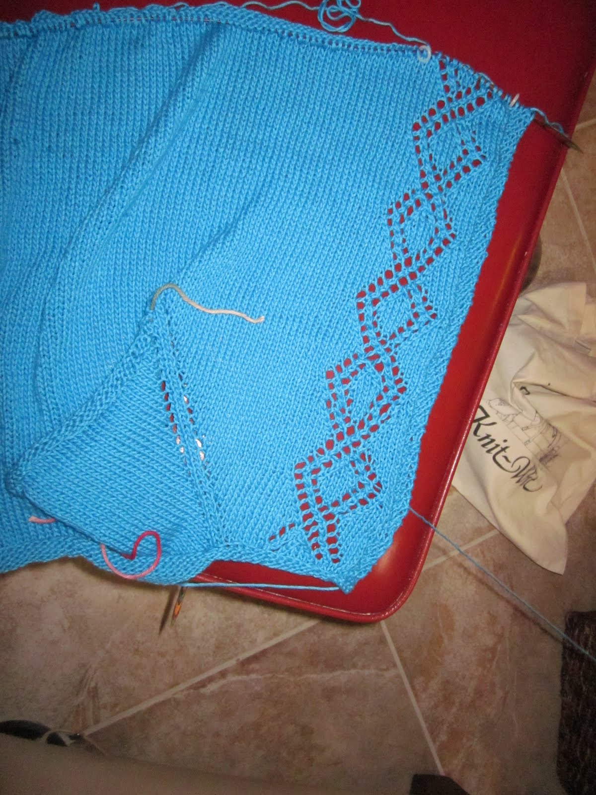 So the downside of a great knitting app is that if you're not paying attention you can run out of charge. I have about a inch left on the body of my lacy cardigan, then on to the sleeves.